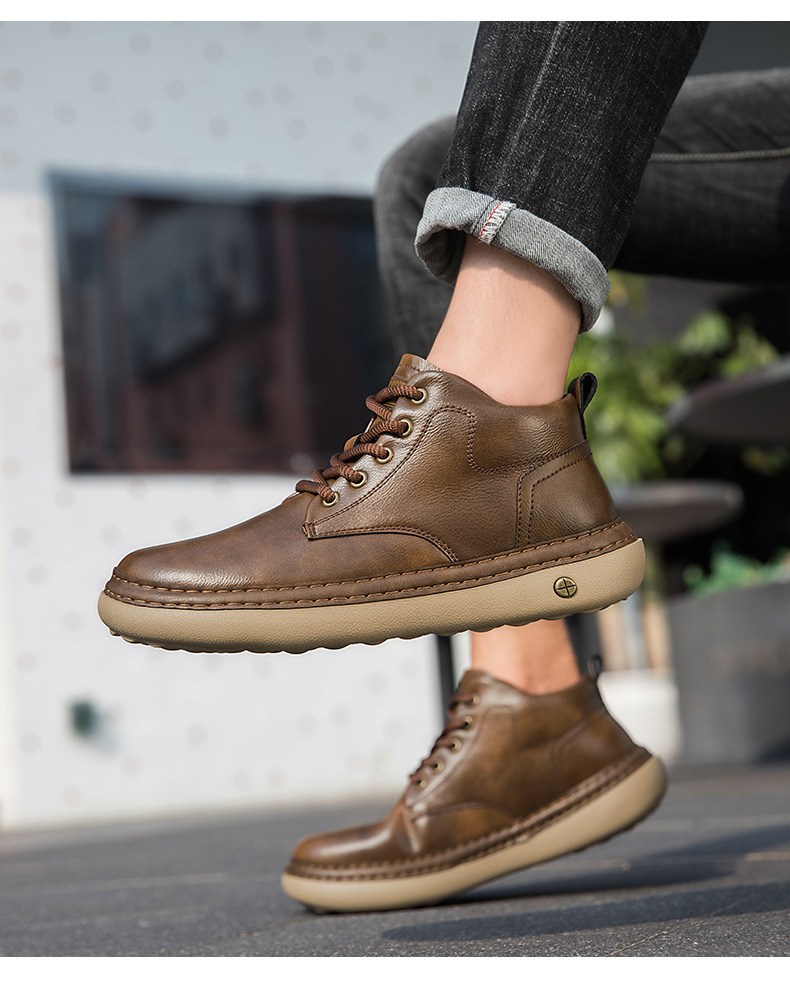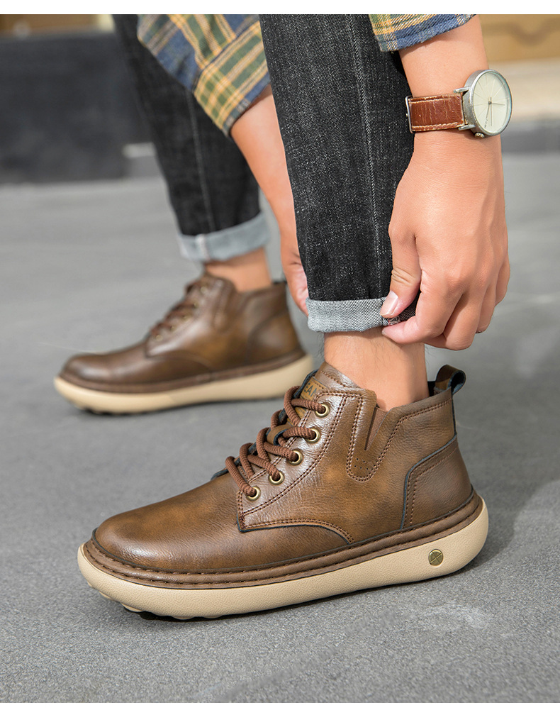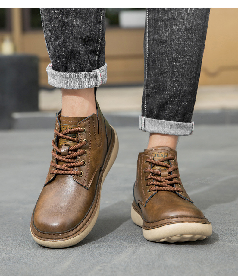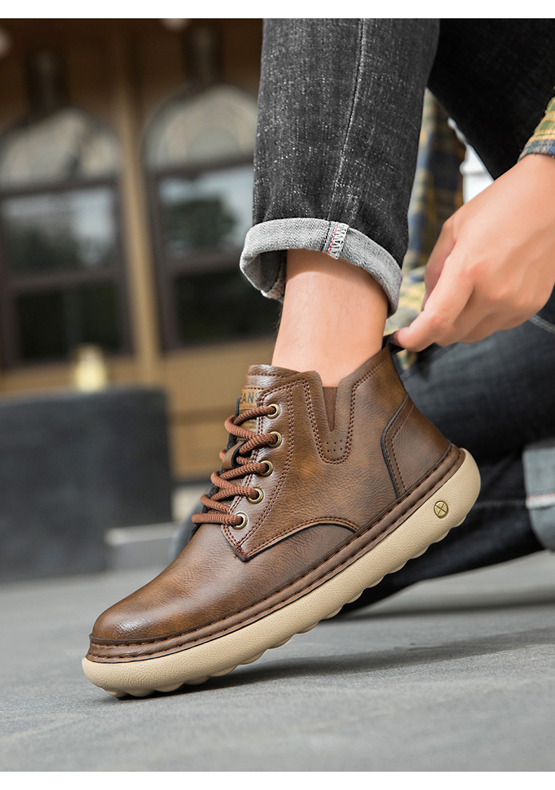 イギリス風レトロ メンズ厚底ワークブーツ