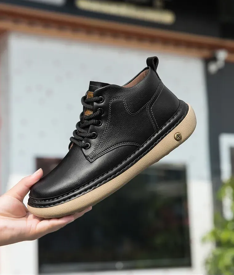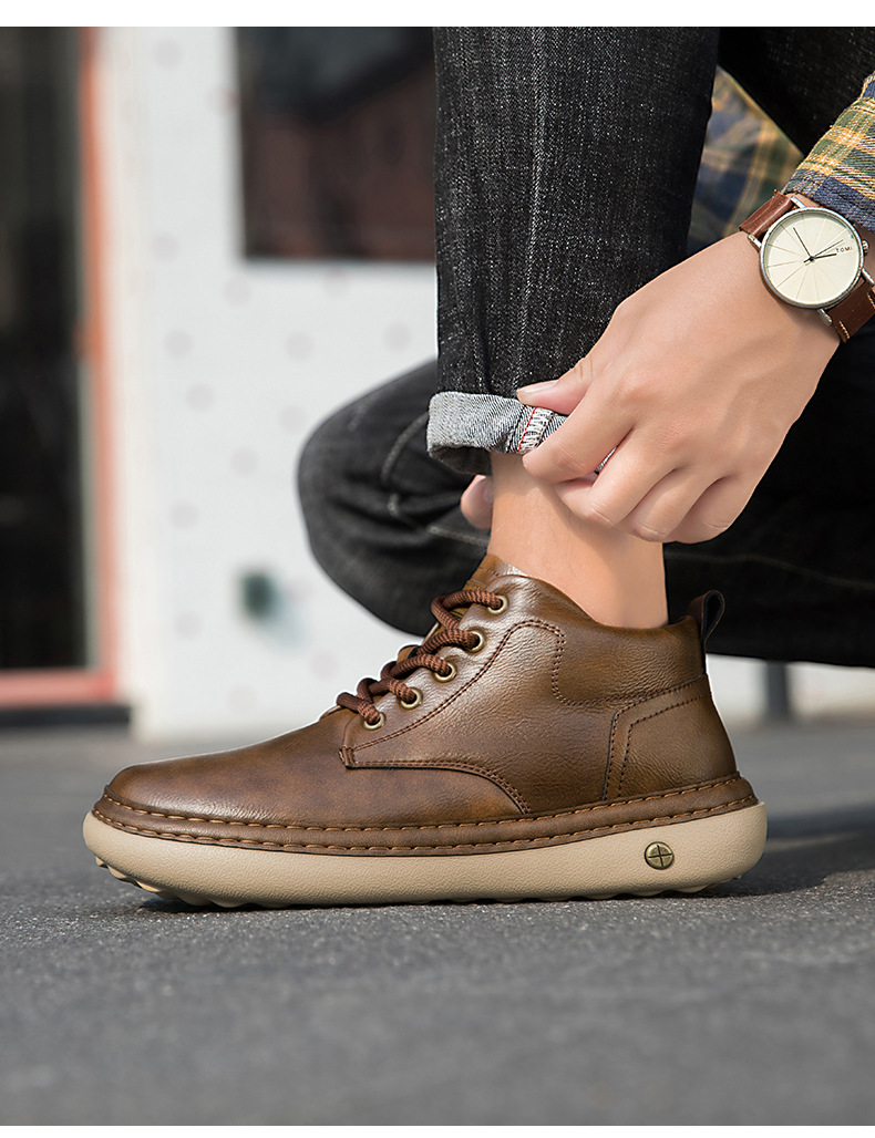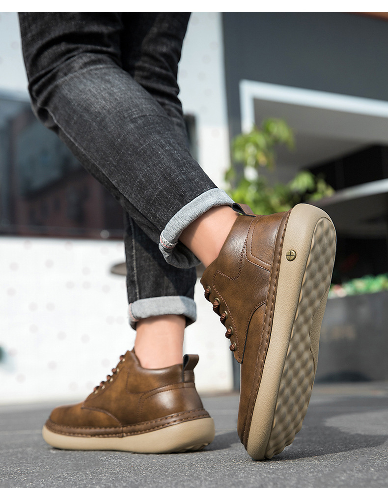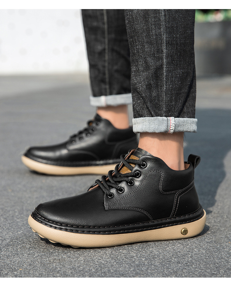 2025年冬季発売のメンズマーチンブーツで、アッパーに高品質な超繊維レザーを採用し、柔軟で耐折れ性に優れています。内里は肌触りの良い布地、インソールはPU素材を使用し、厚さ3cmのゴムソールが軽量で防滑・耐磨耗性に優れ、春・秋・冬の三シーズンで快適に着用できます。